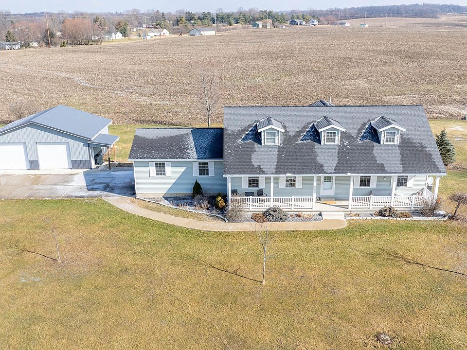 Gorgeous cape cod home nestled on a spacious 1.57-acre lot. Home features 3 oversized bedrooms, 2 bathrooms, covered porch, 2-car attached garage, & 3,060 sf of living space. The full unfinished basement features an additional 1,700 sf, poured concrete walls, studs, insulation, 4-ft sliding egress windows, & washer/dryer area. Potential for a total of 4,760 sq of living space! Kitchen features beautifully refaced cabinets, large pantry & stainless-steel appliances. The first-floor owner's suite has an en suite bath & large walk-in closet. Upstairs you'll find 2 spacious bedrooms with a full bath. Water heater & softener new in 2019. The 24X30 pole barn with oversized garage doors & concrete slab was built in 2019 with 100-amp electric. See it today!