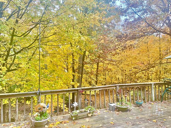 This lovely 3 bedroom home with attached 2 car garage, built in 1997, is nestled on a gorgeous wooded lot atop Piety Hill! Great open floorplan offers 2 main level bedrooms, a large upper level bedroom with cathedral ceiling, plus a 4th bright and spacious bedroom in the walkout basement. Main level offers a well planned eat-in kitchen with table space plus island seating for 5. Separate dining room. Main level laundry. Living room with cathedral ceiling, wonderful large windows and wood burning fireplace. Sliders lead to the large deck with amazing views. The bright and spacious walk-out basement offers 9' ceilings and provides much added living space and storage. Sliders lead to a patio area. 2 full baths on main level, 1 spacious full basement bath. Furnace 2018. 200 Amp Electric.