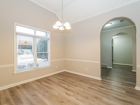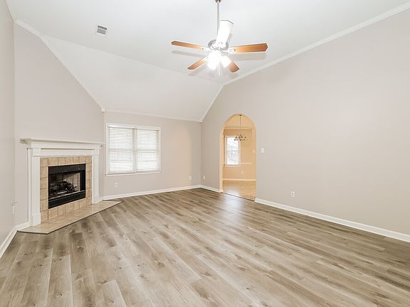 This three-bedroom, two-bathroom rental home in Cordova, TN will have you feeling right at home! A tile fireplace with a white mantel welcomes you into the spacious living room, which also has a high ceiling and a charming arched doorway leading to the kitchen. Spread out on the long quartz countertops as you cook your meals, and enjoy dining by the bay window in the breakfast nook. Use the above-the-range microwave when you're short on time. Luxuries abound in the expansive main bedroom suite, boasting modern laminate flooring and an en suite bathroom where you can relax using the jetted tub. The suite's walk-in closet has ample built-in shelving to help you keep your things organized. Don't wait to apply for your tour of this fantastic property!