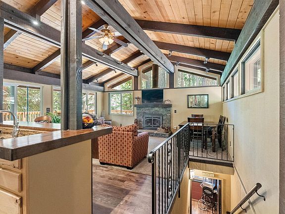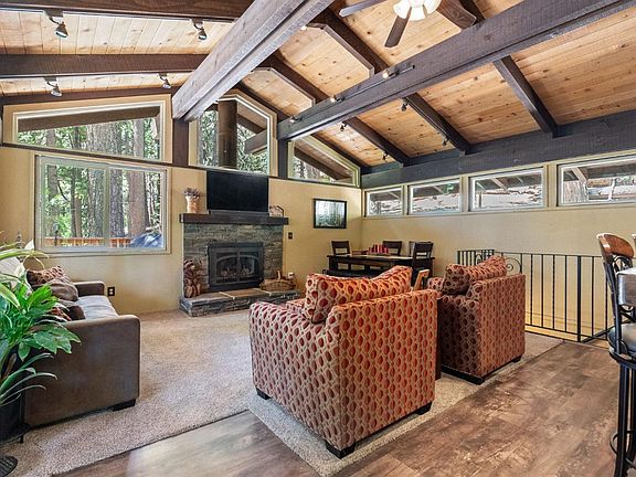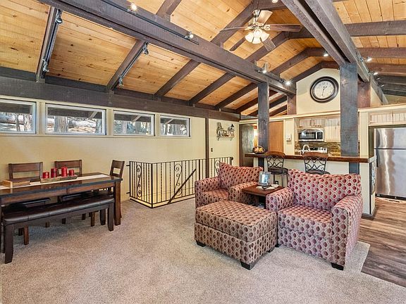 Beautifully updated cabin with open concept living space. The kitchen has granite counters and hickory cabinets along with newer appliances. Enjoy cozy nights in front of the 2 year old fireplace and appreciate the amazing open beam ceilings and new double paned windows all around the room. Then step out onto the beautiful deck and revel in the peaceful forest surrounding this lovely cabin. Downstairs you will find a second tastefully updated bathroom, laundry and finished space for a game room, living room or more beds. This charming and ready to move into cabin will not disappoint. The owners have taken immaculate care and it shows.