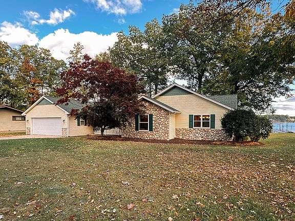 Beautiful setting on this 500+ Acre All-Sports Lake! This 3 Bedroom 2 1/2 Bath Ranch has so much to offer! Let's start with the 100' of flat frontage (no steps) to the beachfront and comes with dock and 2 ShoreStation lifts. This is all nestled in classic shade trees to the oversized patio with great views of the lake and grill ready to host family, friends or to just enjoy a relaxing day at the lake.
