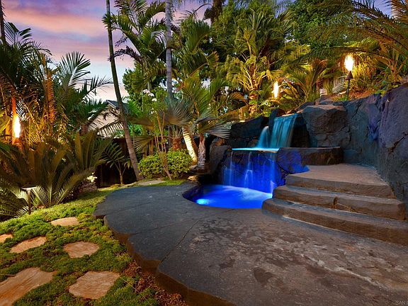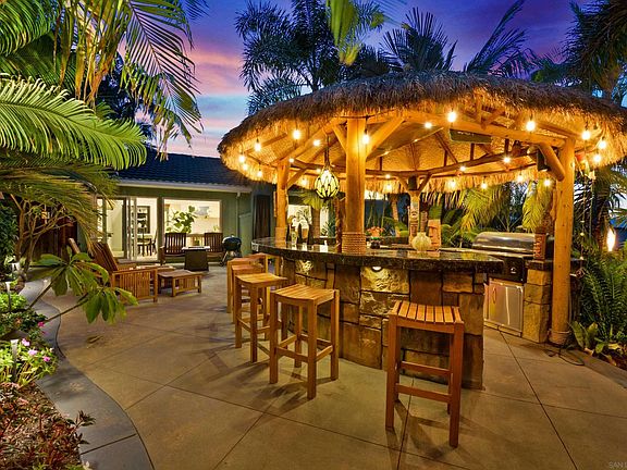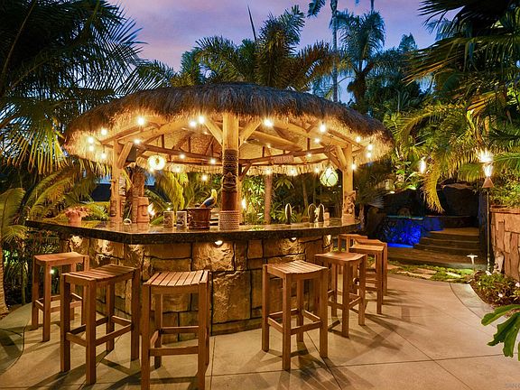 Welcome to this beautifully maintained tri-level home in the highly desirable La Paz neighborhood of Mission Viejo. This popular San Lorenzo floor plan features vaulted ceilings with exposed wood beams, light gray vinyl wood-look flooring, and abundant natural light. The fourth bedroom has been converted into a cozy den with a brick fireplace and custom oak built-ins, perfect for an office, library, or media space. The bright kitchen and dining area overlook the backyard, a true tropical paradise. Enjoy a spacious patio surrounded by over a hundred different species of palm tree, a custom-designed grotto with a waterfall flowing over the spa and into a small dipping pool, and a tiki-style bar — perfect for entertaining, relaxing, and soaking up Southern California life. With neutral tones throughout, a functional layout, and charming indoor-outdoor flow, this home combines comfort, character, and location in one of Mission Viejo’s most sought-after communities. Known for its private membership to Lake Mission Viejo, tree-lined streets, award-winning schools, and close proximity to golf courses, parks, shopping, and restaurants, this home offers the ideal blend of community and convenience.