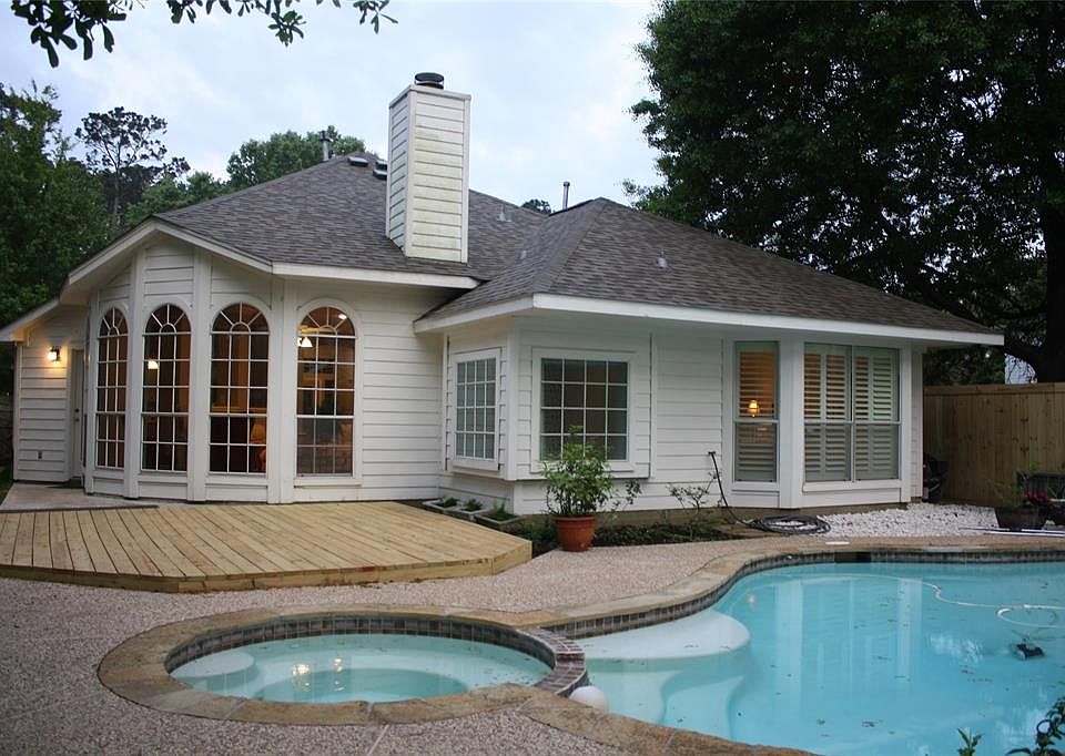 Unique single level masterly efficient open floor plan with high ceilings throughout entire living area complemented by gorgeous nearly top to bottom windows looking out to your pool and spa oasis. Fresh paint throughout, island kitchen with granite and a climate controlled flex bonus room with too many other updates to mention...see attachment! Retreat on your beautiful wood look upgraded flooring to your master suite with bay windows that provide relaxing views to your backyard paradise! You are high and dry with no flooding on this property due to Harvey or any other act of nature.