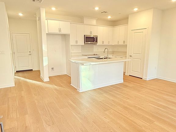 This modern home features 1,438 sq. ft. of open living space with quartz countertops, stainless steel appliances, and smart home features including a smart thermostat. The home includes energy-efficient solar panels to help lower electric costs and a 2-car garage for parking and storage.