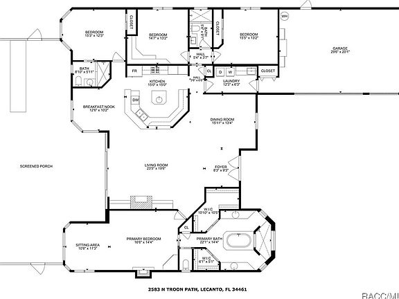 Black Diamond Ranch gained fame and iconic golf status upon opening of the Tom Fazio designed Quarry, Ranch and Highland Courses. Today there are 45 holes of pro golf across the rolling hills of this gated enclave. The Ranch course has just completed an extensive multi-million-dollar makeover and has never looked better! With a new tile roof in 2023 and fresh paint, inside and out, you could say the same thing about this contemporary ranch home adorned with stacked stone amid mature landscaping. The moment you open the front door your view goes as far as the eyes can see, the very definition of a million-dollar view! The view from all the back rooms, lanai, and screened patio is a 180-degree view spanning 4 tee boxes, fairways, and the largest body of water found in Black Diamond, second only to the quarry itself. This home is everything you would expect for an unparalleled lifestyle starting with rich cherry cabinetry is found throughout the home along with 8’ solid wood doors, rounded corners, and arched passageways underneath a soaring cathedral or lighted tray ceiling with crown molding. The gourmet chef’s kitchen features professional grade Viking gas cooktop with grill, hood, and double ovens. Sous sink with second disposal on the Island creates a functional space for more than one cook in the kitchen! Or choose outdoor grilling in the summer kitchen and enjoy dining under the sunset hues with that forever view! Sliding glass doors disappear to make indoor/outdoor living a breeze and on cooler nights enjoy a fire in the living room or primary bedroom. The main suite offers over-sized comfort with sitting area, fireplace, two walk-in closets, separate vanities and pass-thru double shower open on each side. Your guests will enjoy their own en-suite bedroom with added safety and convenience features in the bathroom. You don’t have to love golf to love where you live!