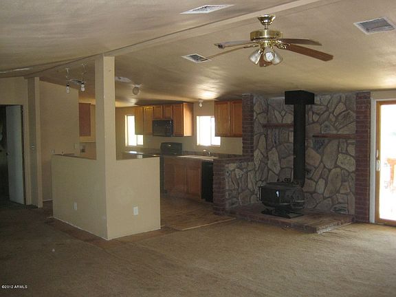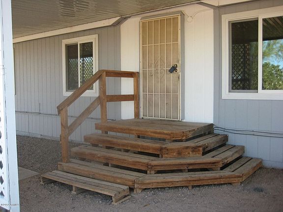 Handyman special. 3Br/2Ba manufactured needs repair & updating. Guest quarters and workshop/storage. All fenced lot, Awnings cover entire front and back of home. Handicap ramp in back. Main house has 2 evap coolers, no A/C, no heat. Guest house has full bath, small kitchen, studio LR/BR combo, wall A/C. Needs TLC - Priced at the value of the land that has water, electric, septic and fenced.