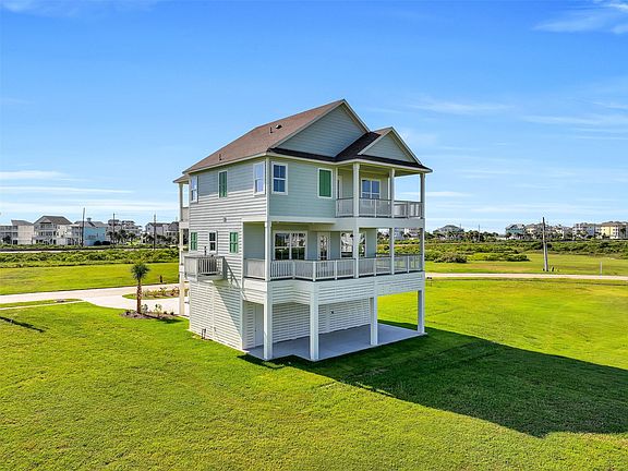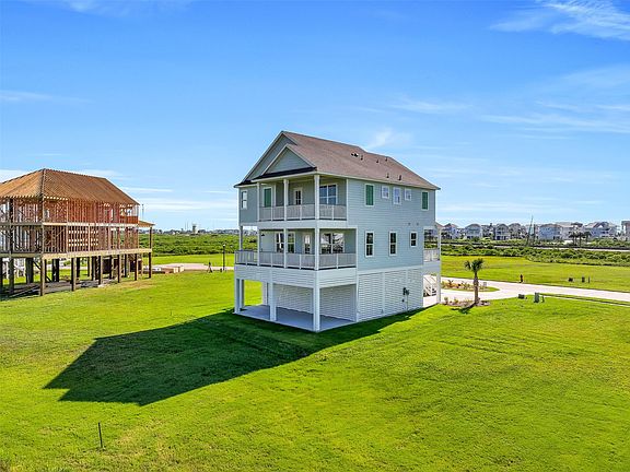 Stunning new construction in sought-after Pointe West! The open-concept main level features a chef’s kitchen with an oversized island, walk-in pantry, and seamless flow into the dining and living areas. Soaring ceilings and walls of windows flood the space with light and frame breathtaking views of the Gulf and Galveston Bay. A powder room and laundry area complete the main floor. Upstairs offers all bedrooms plus a spacious flex space. Multiple decks on the front and back provide the perfect setting for sunrise and sunset views. The home backs up to a wetland and overlooks Galveston Bay—ideal for nature lovers. All resort-style amenities, including the infinity pool, clubhouse, restaurant, fitness center, and lazy river, are accessible by golf cart via the beach tunnel. Whether for full-time living, vacationing, or investment, this home offers luxury coastal living at its best.