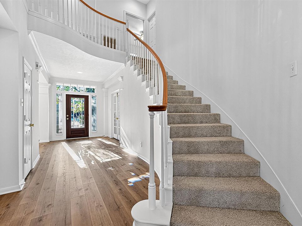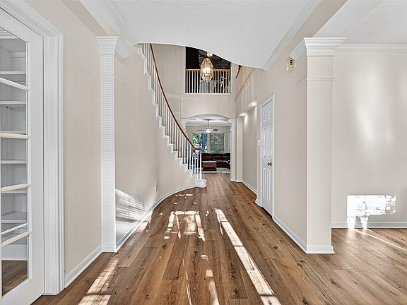 Exquisite, immaculate, and thoughtfully designed move-in ready 2-story home in the centrally located gated community of Spring Lakes, featuring high-end updates including a 2-year-old roof, 2014 HVAC, fresh paint, luxury vinyl flooring, luxury granite countertops, updated bathroom cabinetry, and a modern kitchen sink. This elegant home offers 4 spacious bedrooms, 3.5 baths, a private office with built-in bookshelves and French doors, formal dining, and living areas, a family room with built-in shelving, and an expansive upstairs game room. A graceful curved staircase leads upstairs. The primary suite is a true retreat with a jetted tub and double vanity. The gourmet kitchen showcases a generous island with a gas cooktop and premium granite finishes, ideal for entertaining. Step onto the back porch and into the fenced yard—perfect for relaxing or hosting. Spring Lakes offers serene lakes, walking trails, pool, pickelball/tennis courts, all minutes from Old Town Spring and I-45.