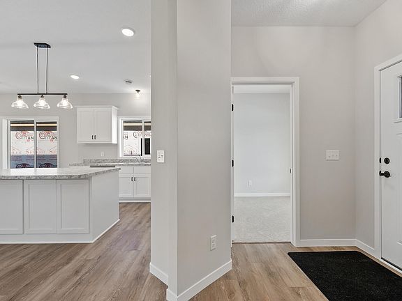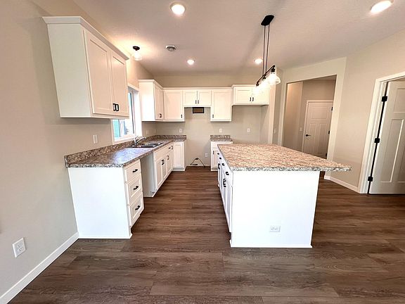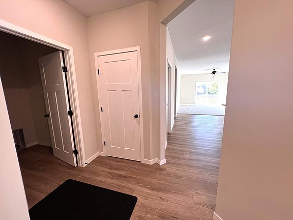 Welcome to effortless living in this beautifully designed one-level home located in a highly desirable and affordable HOA that allows fences—a rare find! Featuring 3 spacious bedrooms and 2 modern bathrooms, this home is thoughtfully crafted with comfort, convenience, and style in mind. Enjoy in-floor heating, on-demand water heating, central air, and 9' ceilings throughout. The heart of the home boasts luxury vinyl plank flooring, custom alder cabinetry, and a walk-in pantry perfect for extra storage. Wide doors and hallways offer easy accessibility, while the main-floor laundry room adds everyday convenience. Step outside to a concrete driveway, grilling patio, and a fully landscaped yard with irrigation—perfect for entertaining or simply relaxing outdoors. The insulated 2-car garage ensures comfort year-round.