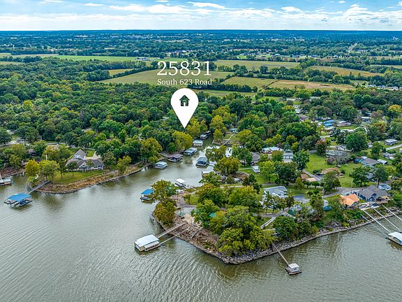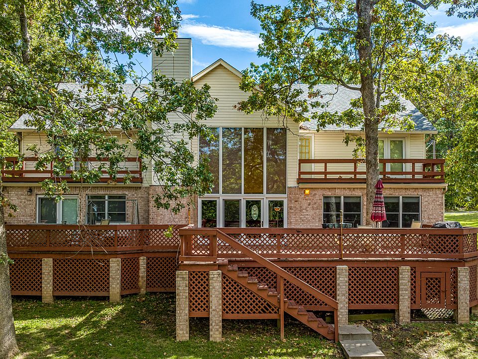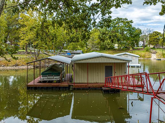 VRBO friendly, Moore's Harbor, spacious home on waterfront lot with 2 slip boat dock, 106' waterfront, and 2nd lot with detached garage/shop. Traditional style 2 story home with 5 bedrooms and 4 full bath. Open living area, brick fireplace, gas logs, wall of windows on the lake side. 3 bedrooms on the main level with 2 full bath rooms and 2 bedrooms and 2 full baths on the 2nd level. Large wood deck on lake side, 2 upper balconies off the 2nd level bedrooms.