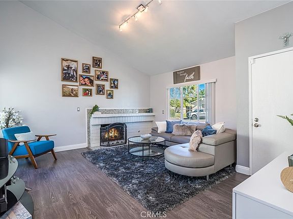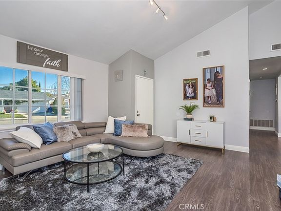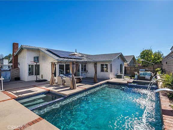 Welcome to this gorgeous updated POOL home located on a cul-de-sac in the highly sought after Village Homes Neighborhood in the heart of Valencia. Walk in and experience 3 bedrooms, 2 baths with nearly 1200 sq. ft of open contemporary living space. You will love single story living at its best including modern laminate flooring, inviting paint selections, glamorous light fixtures, and the oversized windows throughout flooding the space with natural light. The Great Room boasts soaring ceilings, a cozy brick fireplace and views of the serene backyard. The kitchen has been recently updated with freshly painted cabinetry, stainless appliances, granite counters and a large center island. The dining area enjoys views of the private oasis and is highlighted by a lovely chandelier. The Primary Suite has a private upgraded ensuite bath, incredible closet space with custom organization, and features large sliding doors leading to the backyard. The secondary bedrooms have ample space, large closets and views of the landscape and neighborhood. Walk outside and enjoy a breathtaking dark surfaced pool and spa with modern water features providing a feeling of luxury and class. The pool has been accented with stacked stone and blue lagoon tiles. You'll love the artificial turf and multiple patio areas perfect for hosting large gatherings or for simply enjoying those beautiful Santa Clarita evenings. Don't miss the upgraded garage interior with epoxy flooring and the modern convenience of Solar! Close to award winning schools, Henry Mayo Hospital, shopping, parks, paseos and easy access to the 5 Freeway.