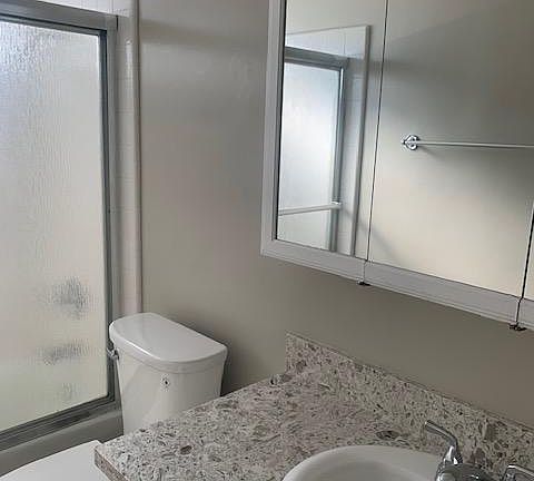 Completely remodeled 2 bedroom 1 1/2 bathroom townhouse style apartment. Both bedrooms are upstairs along with the full bathroom. This unit is equipped with laminate flooring throughout except for the stairs, the stairs have new carpet. One of the bedrooms has mirrored closet doors. There is a stove and dishwasher in the kitchen, quartz countertops in the kitchen and bathroom. There are laundry hookups for a stackable washer and dryer (ONLY), a two-car garage, and a private patio. The owner pays for water & trash.