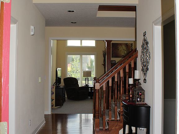 Motivated Sellers!! So many upgrades throughout! Two story foyer with hardwood flooring, First floor den, a spacious two story family room with a brick gas log fireplace, neutral carpet and open to kitchen. This eat in kitchen is just stunning! A center island kitchen with breakfast bar, upgraded cherry cabinets, stainless appliances are upgraded, hardwood flooring, granite counter tops, just a dynamic kitchen! Master bedroom offers a cathedral ceiling, neutral carpet and a HUGE walk in closet with built ins. The master bath offers upgraded travertine and marble floors, whirlpool tub, seperate shower. Relax outdoors with new patio and landscaping. Too many extras to mention.