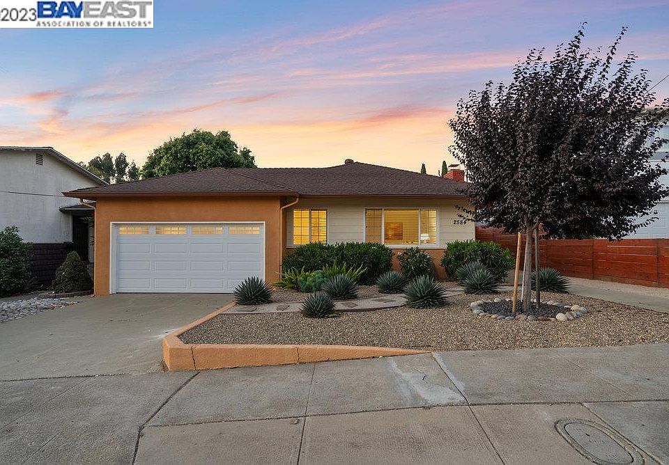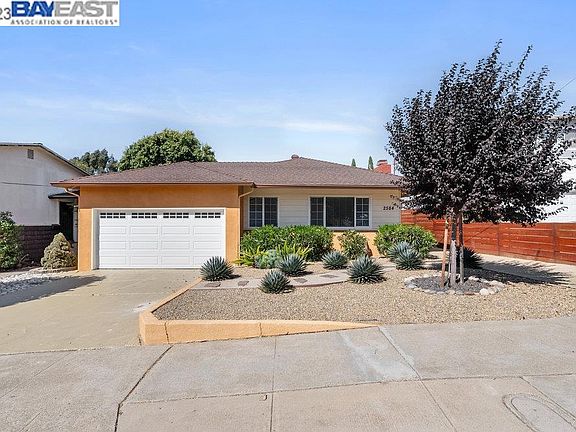 This sensational home is nestled in the desirable Fairview neighborhood of the Hayward Hills, along the Castro Valley border. This single story gem offers fresh paint, dual pane windows, and stylish flooring throughout. The inviting living room boasts a fireplace, an adjacent office-ready bedroom, and a modernized kitchen with chic cabinetry, stainless appliances, granite counters, and a dining nook. Both bathrooms feature contemporary vanities and tile. The primary suite offers French doors that lead to the backyard. Both the front and rear outdoor spaces have been recently redesigned and provide a true urban oasis. The home has no rear neighbors and the exterior grounds are the perfect spot to entertain and dine al fresco on dazzling autumn evenings. Enjoy nearby amenities, shops, and eateries in the charming downtown locations of both Hayward and Castro Valley. Commuters will value the proximity to Castro Valley BART and major highways. Outdoor enthusiasts have easy access to regional hiking trails, Lake Chabot, and Don Castro Regional Parks for various recreational activities. View the 3D matterport tour at: http://www.2584jacobs.com/mls/115861501