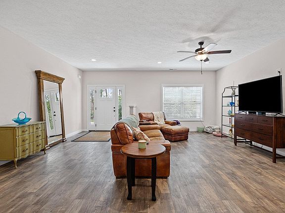 Set on just over 2 acres in east Tippecanoe County, this custom-built 2022 home offers nearly 2,000 square feet of modern comfort and thoughtful design. Surrounded by mature trees and a peaceful wooded backdrop, the property provides both privacy and convenience. Inside, a welcoming foyer flows into a vaulted great room, where natural light fills the open living, dining, and kitchen spaces. The kitchen is a baker’s dream with stone countertops and ample workspace. Off the back, a fully screened three-seasons room lets you enjoy the beauty of your wooded lot year-round. The split floor plan offers privacy, with a jack-and-jill bathroom featuring separate vanities, a private water closet, and shower. The spacious primary suite connects to an ensuite bath, oversized walk-in closet, and directly into the laundry room—an ideal mix of luxury and practicality. Sheet laminate flooring extends throughout, making upkeep easy. This home blends custom craftsmanship with modern efficiency, creating a rare find in Lafayette’s countryside.