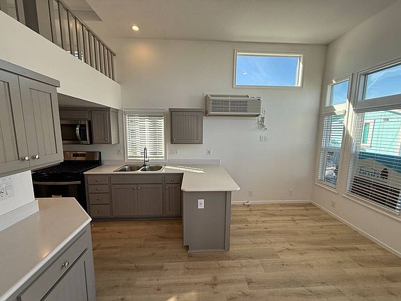 This bungalow style home has an open floor plan for a one bedroom and one bathroom with 11' high ceilings and 2 split lofts. Located in a family community in a quiet neighborhood. LED recessed lights, dual pane energy efficient windows. Includes refrigerator, microwave, range, and garbage disposal. Near schools, hospitals, shopping, grocery store, and not too far from the freeways and beach.*Space rent is only $1,000