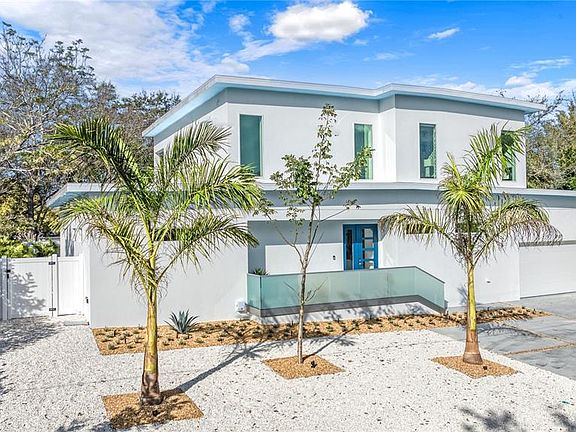 Step into modern luxury at The Palace on Clematis, a nearly-new 2024 single-family home offering more than 3,500 square feet of impeccably designed living space where every detail has been curated for refined living, from its modern architecture to its resort-style amenities. This six-bedroom, seven-bath residence combines high-end finishes with relaxed Florida style, delivering an exceptional opportunity for discerning buyers. The open floor plan features expansive living and dining areas that flow seamlessly together, centered around a chef’s kitchen boasting premium appliances, a large center bar top island, and custom cabinetry with under-cabinet lighting. Two bedrooms are conveniently located on the first level, including the spacious primary suite with it's spa-inspired ensuite bath designed for total relaxation. Head out any of the sliding doors to your private outdoor retreat, where a heated pool & spa, firepit lounge, and lush tropical landscaping create the perfect oasis for entertaining or unwinding. Upstairs, you'll find four more ensuite bedrooms, each with its own walk-in closet and distinctive designer details, along with an informal family room and extended balcony that offer another inviting gathering space. Situated in the sought-after Arlington Park and South Gate area, this residence provides proximity to top-rated schools, cultural attractions, boutique shopping, and Sarasota’s best dining destinations. The central location also offers quick access to world-class beaches, medical centers, and regional airports. A true showcase of craftsmanship and contemporary elegance, The Palace on Clematis is a rare find in central Sarasota. Discover this one-of-a-kind residence and make it your new Sarasota address.