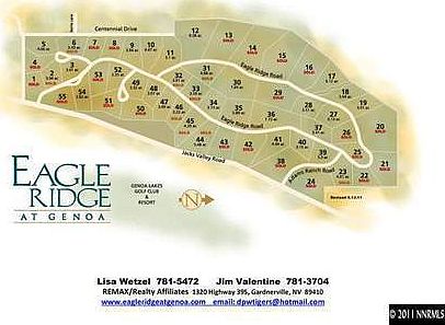 Residential Lots & Land Eagle Ridge Lot Nestled against the East slope of the Sierra Nevada mountain range, Eagle Ridge at Genoa offers Views, Views, and more ? Views. The views in all directions are the most impactive feature of this spectacular enclave of special residential lots. Situated on the historic Adams Ranch, owned by the Adams Family since 1853 until they sold to the developers of the subdivision, Eagle Ridge at Genoa offers the opportunity to reside on the same property that was selected by one of the early pioneering families to settle in the Carson Valley. Lots range from 3 to over 9 acres in size, each with underground power, phone, natural gas, water and sewer utilities to the lot. Eagle Ridge at Genoa has protective CC&R?s to maintain every lot owner?s investment, and Architectural Guidelines that will sustain quality during the build-out. They provide for a minimum of a 2, 500 square foot size home. Generous building envelopes protect the spectacular views for adjacent property owners and in some instances the integrity of the improvements. Eagle Ridge has vested status with Douglas County meaning it is not affected by the Sustainable Growth Ordinance ? building permits are readily obtainable.