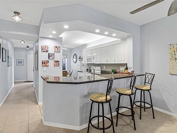 LOCATION LOCATION! Discover the ultimate living in North Naples within this fantastic 2-bedroom, 2-bathroom condo. Positioned near the second pool and residence gate, this unit provides convenience and comfort, complete with a carport space and extra front parking. Boasting several desirable features, including a newer AC unit from 2019, updated tile roofs, granite countertops in both bathrooms, and a refreshed kitchen tile, this condo offers a touch of modern elegance.The kitchen is a standout, featuring a breakfast bar and a stylish updated glass backsplash. Embrace the serene lake views from the screened lanai, equipped with sliding glass doors that allow for versatile use as an additional room. The master bedroom offers a tranquil retreat with its walk-in closet and lovely lake views, while the master bathroom impresses with dual sinks and granite vanity tops. Benefit from the excellent location, with Publix, banks, shopping, restaurants, Vanderbilt Beach, Mercato, and the newly updated Ritz Carlton on the beach, just 4.2 miles away. The gated community of Pipers Grove is alluring with its impressive array of amenities, all recently updated, including three community pools, bocce ball, Har Tru tennis courts, a club house, and a workout room. With its prime location, updated features, and outstanding amenities, this condo shines as a true gem in North Naples. Grab the opportunity to make it your own and experience the best of Florida living!