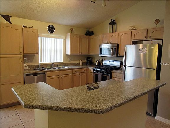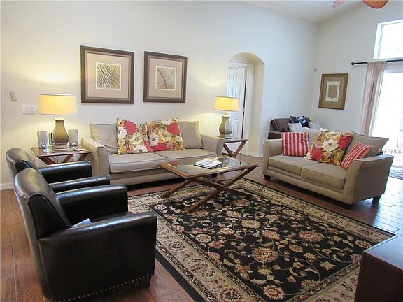 Your chance to own this income producing property! This home has ALL Tile throughout. The living area and each of the bedrooms have new wood plank ceramic tile--great looking, durable and easy maintenance. This home has 5 amply sized bedrooms, one of which is a Master Suite, with his and her closets, double vanities, a glass enclosed shower and a separate soaking tub. There is also a Master ensuite to ensure additional privacy and relaxation! You may only want to interrupt your comfortable rest to prepare a great meal for you and your family on the 6 burner stainless gas range, next to your new stainless fridge! You'll delight in the modern and whimsical lighting fixtures and enjoy the indoor/outdoor lifestyle from the ample and beautiful living room area, through french doors, and out onto the covered pool deck with large sunning deck, a great pool with heated spa, set against the beautiful conservation landscape. Ahhh! Tastefully furnished and decorated, your guests will be booking their next vacation with you even before they finish their first! The inside has newer interior paint and the exterior has just been painted NOW in preparation for the new owners! The home is ideally situated in a wonderful area of Kissimmee, very close to Disney World and other amenities, and FL-429 for additional quick access. Bookings are in place at no cost to the Buyer. All furnishings, decor and accessories are included. Did I mention - there's no HOA?! Make your appt to see this great home today.