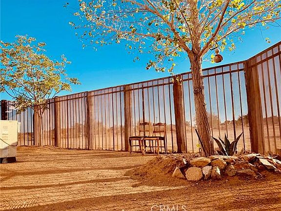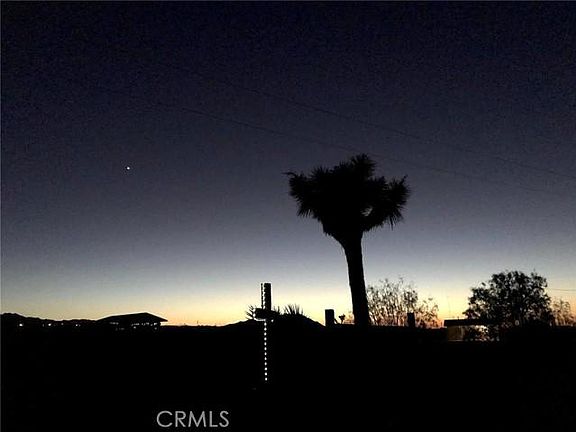 Considering a move from all of the noise, unwind from the city hustle under painted skies and a blanket of stars at this tranquil, 5 acre property. The views from the home are vast and naturally colorful, full of Joshua Trees, mountain skylines, and rock formations. Newer interior and exterior paint. Spacious two bedrooms, kitchen with newer counter tops and appliances. Living room is carpeted, dining room has wood laminate flooring, tile in the bedrooms and bathroom. Ceiling fans in all the bedrooms and living areas in addition to central heat/air (new ductwork) plus an evaporative cooler. The expansive yard is fenced with shaded areas for outdoor entertainment. The perfect desert oasis or investment opportunity.