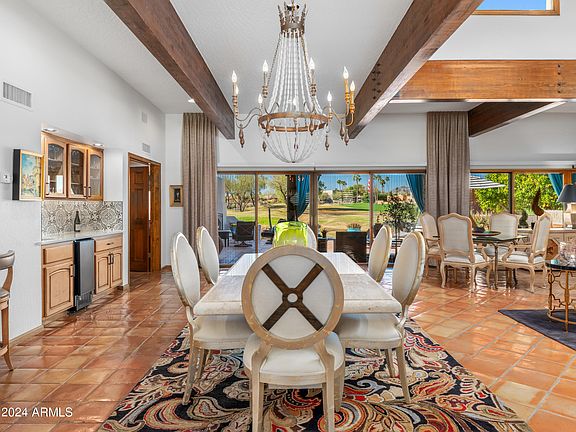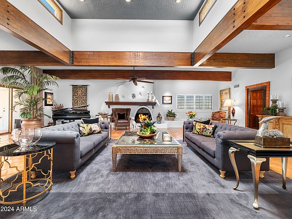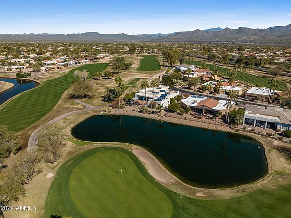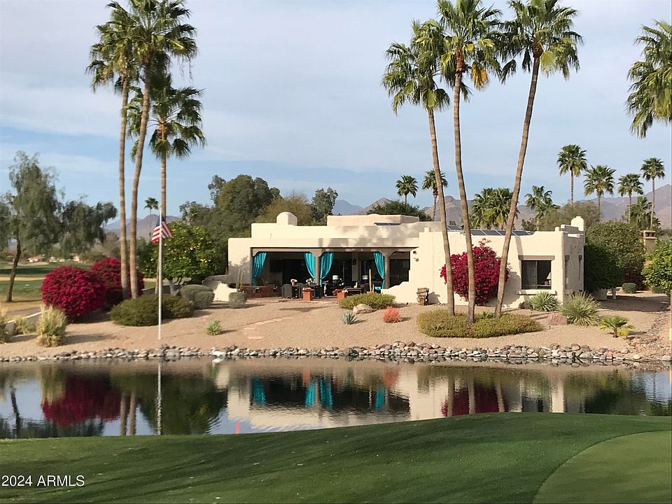 Rare opportunity to own a spectacular custom home on the golf course in Rio Verde Golf Community. Perfectly situated to take advantage of all nearby amenities. Watch the sunrise over the mountains from the comfortable front deck. The large party friendly back patio with fireplace & hot-tub overlooks the pond w/ wildlife. Enjoy watching the golfers on 2 signature holes (QR 16 & 18). This beautifully appointed home has a MASSIVE gathering room w/ fireplace & wet bar for entertaining or enjoy the intimacy of the hearth room off of the kitchen w/ kiva fpl. The Primary Bedroom features 2 private bathrooms & closets. A very comfortable guest room w/ bath. In addition, there is a large Casita w/ bath, private entrance & great views. 2 car garage & separate cart garage completes this property.