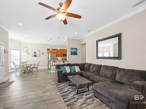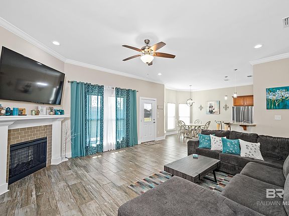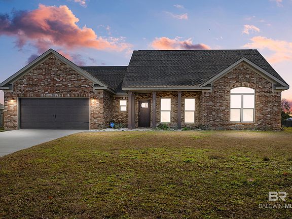 Brick beauty in Elberta now available! Enjoy the quaintness of Wolf's Run South, a highly sought after subdivision conveniently located with quick access to Elberta schools, Foley/Gulf Shores/Orange Beach shopping, restaurants and entertainment, Pirate's Cove, Johnson's Beach and Pensacola NAS. Constructed in 2018, this Gold Fortified 3 bedroom, 2 bath home features a split floor plan and 1,674 sf situated on .41 acres. Upon entering, you'll find quality characteristics such as tall ceilings with a trey in both the living and primary bedroom, granite countertops throughout, modern tile in the common areas and top-grade cabinetry. The primary bed and bath suite are truly a treat with an abundance of space, a socking tub, superior tile shower with upgraded glass door and two master walk-in closets. The living, dining and kitchen are all flow nicely with the fire place being a well appointed focal point with a view from all areas. The bar seating is a exceptional kitchen accent as well as the wrap around countertop, providing ample space for cooking. Just past the dining area, the back porch has a covered patio that faces south and overlooks the back yard. The two car garage rounds out the property allowing for plenty of storage. You won't want to sleep on this one! Buyer to verify all information during due diligence.