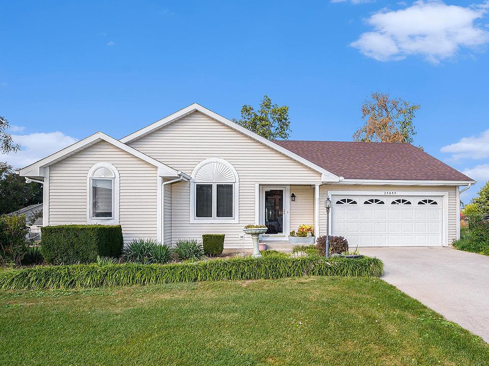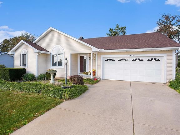**OPEN HOUSE SUNDAY OCTOBER 19TH @2-4** This beautiful 3-bedroom, 2-bath ranch offers an inviting open floor plan with cathedral ceilings and a bright, airy feel throughout. The spacious great room features a cozy fireplace and flows seamlessly into the kitchen—perfect for entertaining or everyday living. The kitchen includes a Whirlpool stove and refrigerator, both newer additions, along with plenty of counter and cabinet space. Primary bedroom includes a walk-in closet. Additional two bedrooms and both full bathrooms are spacious, providing comfortable living and flexibility for family, guests, or a home office. The unfinished basement provides ample storage and endless possibilities to finish and create additional living space. Laundry area is conveniently located in the basement. Outside, enjoy your own private oasis—complete with a peaceful pond, patio space, and mature landscaping that make it ideal for relaxing or hosting gatherings. Recent updates include new sump pump, new shut off valve for irrigation system, and new fans. Located on a large lot in the desirable Fox Run neighborhood, this home offers easy access to the Toll Road, Bypass, and Highway 20, making commuting a breeze. Don’t miss the opportunity to make this charming ranch your new home. Schedule your showing TODAY!