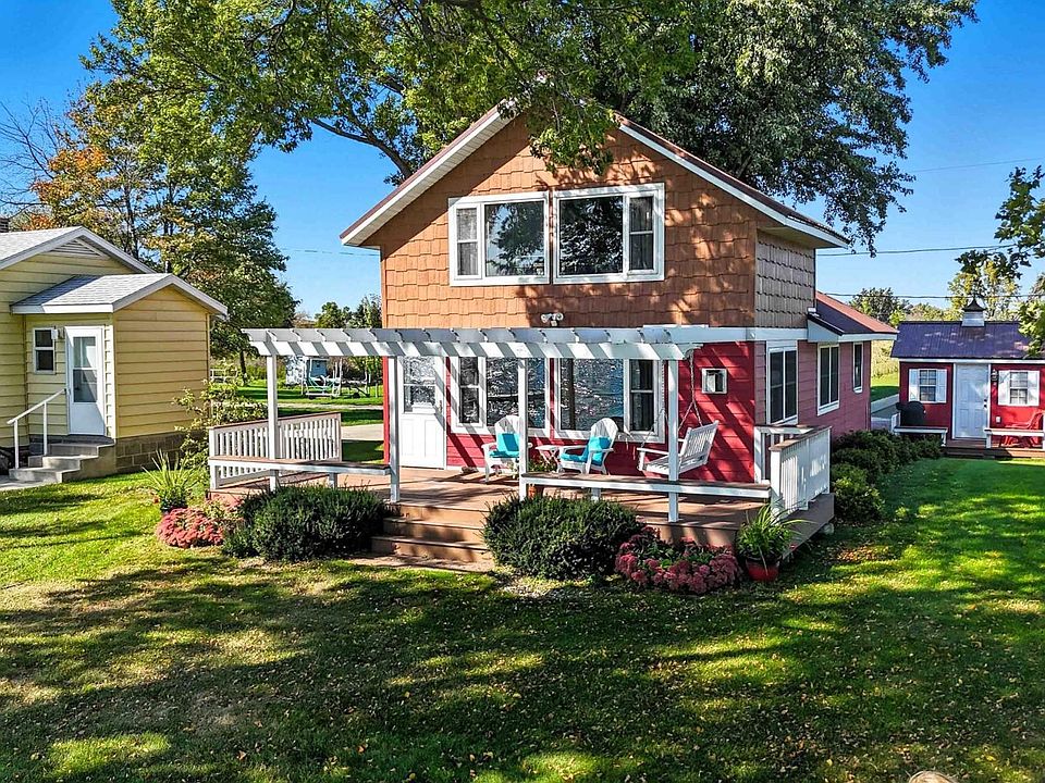 Charming Lakefront cabin with 74 feet of level shoreline on desirable Lake Minnewaska! Your perfect lake escape with breathtaking views! This property is truly a GEM and embodies the timeless charm of up-north cabin living. Inside, the cabin exudes rustic charm with warm wood paneling, exposed ceiling beams, and a comfortable open concept living area. The large windows in the lakeside living room flood the space with natural light and provide stunning South-facing views of the lake. Step right out onto your expansive lakeside deck & pergola…great place to enjoy your morning coffee or relax in the evening. The kitchen features updated countertops & ample cabinet space. The dining area connects the kitchen and great room, creating an inviting space with lake views and a breakfast counter for additional seating. Main floor primary bedroom and over-sized upper level bedroom that fits two trundle beds. Many improvements include windows, LP siding, metal roof, composite decking, furnace, heat pump, flooring, bath, and much more. Lot extends beyond private road to make this 0.39 acres. Located just a short drive from many local amenities including lakeside restaurants, golf courses, & winery, this property combines the tranquility of lakeside relaxation with convenient access. Opportunities like this don’t come along often—your lake getaway awaits.