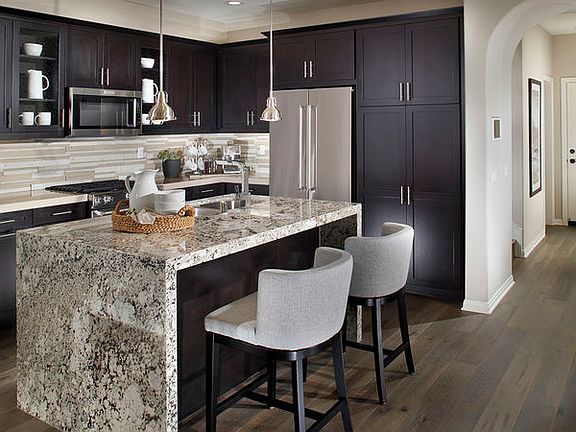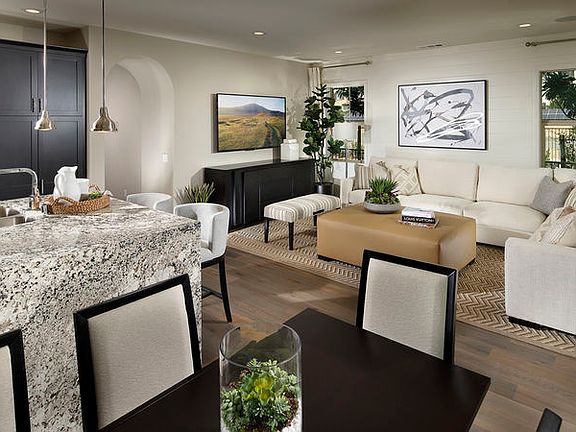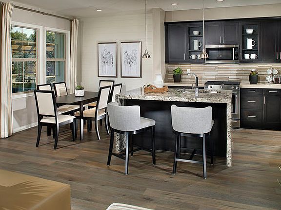 Our most spacious floor plan features a corner location and plentiful windows maximizing natural light. A private courtyard at the front of the home extends livable square footage bringing the outdoors in. The two-story interior beautifully accommodates family gatherings thanks to a large Great Room that connects seamlessly with dining area and cook's kitchen. Stainless steel appliances, granite countertops, center island workstation outfit the modern kitchen. Completing the first floor, a dedicated bedroom with full bath welcomes guests in comfort and style. Upstairs, find two secondary bedrooms plus an elegant master suite with walk-in closet and private bath showcasing a shower and separate soaking tub. A two-car garage plus ample storage space under the stairs afford tucked away organizational opportunities.