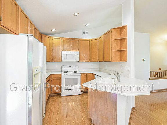 Beautiful ranch style home located in the desirable Eastlake community. Open floor plan, includes large living area, beautiful flooring and vaulted ceilings and fresh earth tone paint. The kitchen features stunning stone countertops and has ample counter and cabinet space. The kitchen opens into an eating area that is perfect for entertaining. The sliding glass doors lead out to the large covered patio, beautifully landscaped backyard which features a privacy fence surrounding the outdoor space. There are two spacious bedrooms that share a full bath as well as a private master suite. The master suite is spacious and also includes a nicely sized closet, dual vanities and a soaking tub. Enjoy the convenience of the main floor laundry room which includes a full size washer and dryer. The full unfinished basement offers additional space that is perfect for storage. This property is within walking distance to Eastlake Tennis Courts, Eastlake Shores Park, trails, horseshoe pits, playgrounds and more.