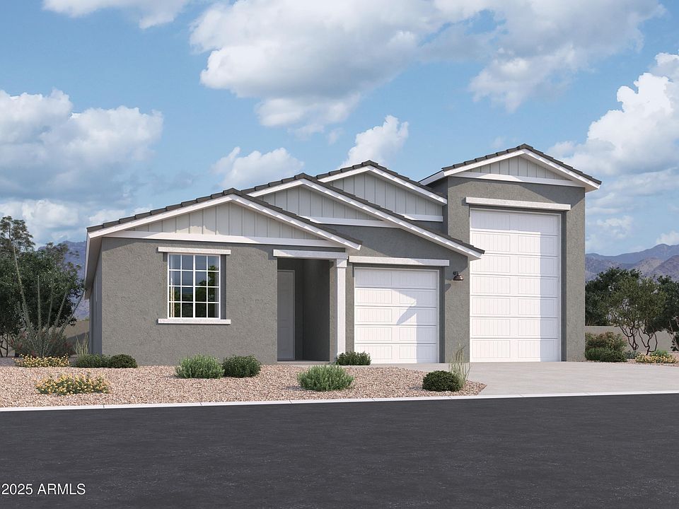 Located in San Tan Valley, this adorable single-story residence spans 2,171 square feet and features 3 bedrooms and 2.5 bathrooms. The home boasts a meticulously designed living space that blends modern elegance with timeless comfort. Seamlessly integrating open-concept living with the stunning Timeless Collection, it includes a den, 8-foot doors, a 4-panel center sliding glass door, and a large kitchen with quartz countertops, 42'' white upper cabinets, and stainless steel appliances. The expansive owner's suite offers dual vanities and a large walk-in closet. Additional bedrooms provide ample space for family or guests, each thoughtfully designed for comfort. This home also comes with a washer, dryer, refrigerator, blinds throughout, a soft water loop, and a garage door opener. Featuring a 4-car garage with a two-car tandem and an RV garage, this residence epitomizes ideal living. The beautiful community offers amazing views, walking paths, parks, pickleball courts, and a lovely lake perfect for catch-and-release fishing. There's so much to enjoy!