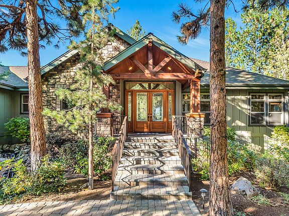 Enjoy stunning views of the fairway from this custom home in Awbrey Glen. This home features main level living, a chef's dream kitchen, and an open floor plan with vaulted ceilings and tons of windows allowing for an abundance of natural light. This home is an entertainers delight offering two outdoor living areas, a formal dining room, spacious bonus area downstairs with a full wet bar, and a stacked stone gas fireplace. Master and one guest room on the main level. Additionally you will find two guest rooms downstairs, one is ensuite with a full living area attached. The 3 car garage offers ample storage and a work area. Awbrey Glen Clubhouse is just a few blocks away!