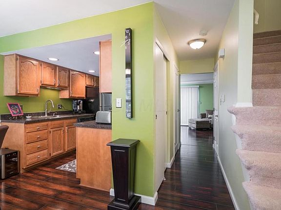 Come check out this remodeled two bedroom condo in Arlington Pointe! This quiet neighborhood sits right along the Scioto river. Finished floors extend throughout most of the home. Great stainless appliances and other updates accent the open kitchen. This condo's open floor plan has a nice flow that allows for great natural light. Living room off the back is open to a quiet, private patio. Finished basement is great additional living space! Reserved parking space conveys with the property. Community clubhouse, pool and fitness facility all included with the HOA. Conveniently located close to OSU, downtown Columbus and the shops on Lane Ave.