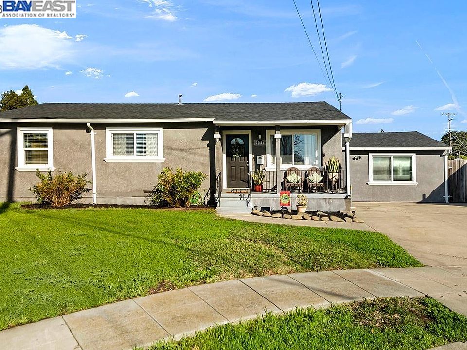 2.25% INTEREST FIXED RATE ON THIS ASSUMABLE LOAN!! ADORABLE!! Located in the popular Schafer Park neighborhood, greeting you with a relaxing front porch, this home has so much to offer! Nicely refreshed throughout, this home offers a light & bright living room with gleaming hardwood floors & built-in desk area for home office space, updated eat-in kitchen with cherry cabinets, black granite countertops, gas stove and easy access to backyard or step-down family room, the step-down family room offers a stunning shiplap wood wall with electric fireplace that offers multiple color options, heat options and more – all controlled by remote! Adjacent to the family room is the laundry room/mud room with barn door to accent, shelving, extra storage closet and access to the backyard too! Each bedroom has loads of light and gleaming hardwood floors, updated bathroom with cherry vanity and shower over tub, home offers a newer roof and windows, extra-long driveway for multiple car parking, spacious backyard with patio area, firepit area, lemon tree and storage shed too! Fabulous location close to multiple shopping centers with groceries, shops, eateries and more, easy access to 880/92 Freeways & San Mateo Bridge, close to schools, Downtown Hayward, movie theater and much more!