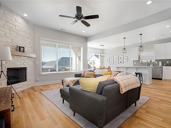 Welcome to this beautifully maintained 3-bedroom, 2-bathroom home featuring an inviting open-concept design. The spacious kitchen and living area offer seamless flow, perfect for entertaining. Kitchen features quartz countertops, gas range, spacious island with counter seating, and dining space. Enjoy cozy evenings by the gas fireplace, and appreciate the warmth of wood flooring throughout, including all bedrooms. The covered back deck overlooks a fully fenced backyard, ideal for outdoor relaxation. A 2-car garage provides ample storage. Nestled in a highly desirable neighborhood, this home is a must-see! Schedule your showing today!