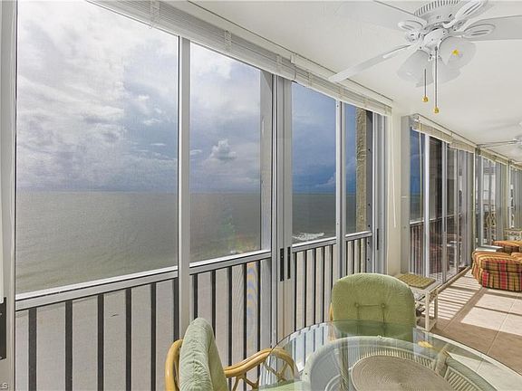 Looking for a Gulf front upper floor end unit on Bonita Beach with unobstructed views from Naples to Sanibel and beyond? Then, look no more! This beauty is tucked away on a quiet cul-de-sac for peaceful enjoyment without traffic and allows beach strolls all the way from Wiggins pass on the S to the end of Hickory Island on the N. Just how far is that? MILES! This 7th floor home away from home has glass on 3 sides, boasts intercoastal vistas of the back bay, and will reward the new owner breathtaking sunsets 365 days a year- There are two (2) full bedrooms, two (2) baths, and a glassed in lanai that provides added living space and year-round enjoyment. The building has been entirely renovated after Ian in '22 with pool rebuild, extensive mechanical upgrades (electric service/plumbing/etc.), new community room, new exterior paint, and new roof. Be sure to check out the exclusive extra storage on the unit floor that is unique to these end units. It has been structurally inspected to meet new FL guidelines for safety. It will provide years of enjoyment for you and your family/friends or rented out monthly. Income potential will surprise you as overall demand increases from more and more owners using these properties solely for themselves. It is being offered turnkey furnished for the buyer who wants to move right in and enjoy it in the coming season when windblown snow drifts close the roads up N. This is the only end unit of it's kind on the market at this time. Someone once said everyone should live on the beach at least once in their life. They were so right- Make this your time to do just that!