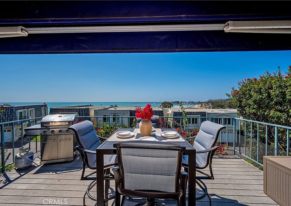 Short Term Rental - Located in the peaceful community of Dana Bluffs, this well-appointed, fully furnished vacation rental boasts panoramic ocean views along with 3 bedrooms + 2.5 bathrooms. Making yourself at home is easy to do with the show-stopping view that immediately greets you. The open concept living area on the main floor is ready for your enjoyment with plenty of comfortable seating for the group. Adjacent to the living room is the chef's kitchen with high-end stainless-steel appliances, wine cooler, a custom quartz waterfall island with bar seating for 4, and 4 additional seats at the dining table. Floor to ceiling sliding glass doors span the width of the main living area with amazing views of Doheny Beach and Dana Point Harbor. The doors open to a large patio, with a gas barbecue, retractable awning, and outdoor dining table. Upstairs you'll find the same breathtaking ocean view in the primary suite. With floor to ceiling sliding glass doors, the private upper patio with a bistro table for two awaits you for some quiet time. The primary suite features a California king-sized bed with hotel linens and plush pillows, a smart TV, as well as an en suite bathroom for extra privacy. If you choose to extend your stay, there is plenty of closet space to store your belongings for longer trips. The two guest bedrooms on the upper floor feature a queen-sized bed, and a twin-over-full bunk bed with direct access to the home's third bathroom featuring a tub-shower combo. Each room is stocked with the same hotel quality linens and pillows, a smart TV, and large walk-in closets. This home also includes garage parking for two cars and central air conditioning. The community of Dana Bluffs provides access to resort-style amenities including a community pool, spa, and tennis court. From this location it's an easy drive to the beach, Dana Point Harbor, the Lantern District area of Dana Point, restaurants and shopping. Lease term is negotiable with a 30-night minimum. NO LONG TERM RENTALS. Rates range from $6,200/month - $7,800/month depending on time of year. Booked the rest of 2024. Next availability is September 13, 2025.