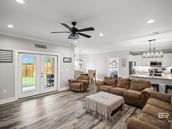 Gold Fortified and Move In Ready Home in quaint Wolf's Run South subdivision off of County Road 20 in Elberta now on market! Constructed in 2021, you'll enjoy 4 bedrooms and 2 baths within this open concept floor plan with split bedrooms. The show stopping granite countertops truly compliment the entire color pallet of the home, including the LVP flooring. The secluded primary is adorned with a tray ceiling, walk-in-shower and double vanities with the same stunning granite countertops from the kitchen. The covered patio is perfect for entertaining or relaxing, and there is opportunity to expand the fenced in area, as the current fence is inside the property lines. Enjoy the convenience of being in close proximity to schools, shopping, entertainment and the beautiful beaches of the Alabama Gulf Coast, while also a short commute to Pensacola, FL. Buyer to verify all information during due diligence.