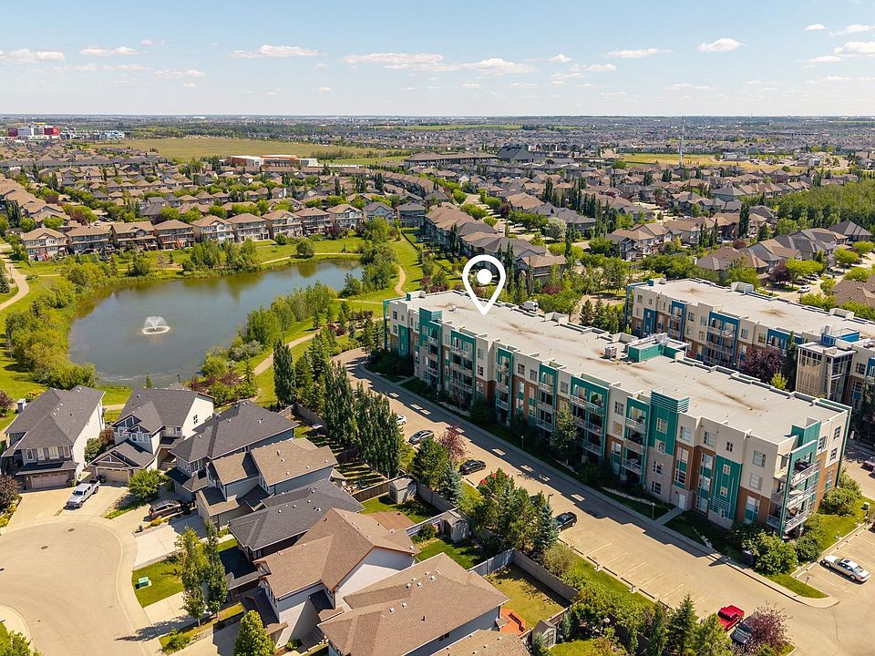 Step into comfort and convenience with this bright and airy 2-bedroom, 2-bathroom, and 2-parking-stall corner unit that offers style and functionality. Featuring 9' ceilings, large windows, and an open-concept layout with laminate flooring in the living space and soft carpet in the bedrooms. The kitchen features stainless steel appliances, ample storage, and a centre island. The primary bedroom boasts a 4-piece en-suite and walk-in closet, while the dedicated den, featuring a built-in desk and shelving, is ideal for working from home. Enjoy peaceful evenings on your west-facing patio or explore nearby ponds and trails. This pet-friendly building also offers a fitness room, guest suite, and TWO titled parking stalls. All this in a fantastic location with shops, restaurants in the nearby Currents of Windermere, and easy access to the Anthony Henday, Terwillegar Dr, and Whitemud. A perfect place to settle in, don’t miss your opportunity to make it home!