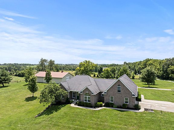 Minutes from downtown Georgetown, Toyota and to the Horse Park, this custom built, all brick ranch with 7.846 acres is surrounded by beautiful views and space to roam. This property is part of a larger tract in the process of being subdivided. Black plank fences and gently rolling hills make a perfect landscape for it. Built in 2004, this property has been well cared for and maintained. Details include: 4 bedrooms, 2.5 baths, a home office tucked inside the primary bedroom suite, dining room, eat in kitchen and great room with fireplace. Most of the home is on a single level, however, a spacious finished area located over the garage is noted as a 4th bedroom for this listing. The large utility room, convenient to the garage entry, is on the main floor and the full unfinished basement offers over 2600 square feet of blank canvas for you to finish as you'd like. Additionally, the 75'x40' insulated metal building with slab floor, water, electric and large doors on each end is a short walk from the back door of the house. A survey was completed that separates the property into 2 tracts but not recorded. Closing on this property is contingent on approval from the Georgetown Scott County Planning Board to split the property into two parcels at the December 2025 meeting. Two restrictions are: 1. No Kennels; 2. No rentals shorter than 12 months.