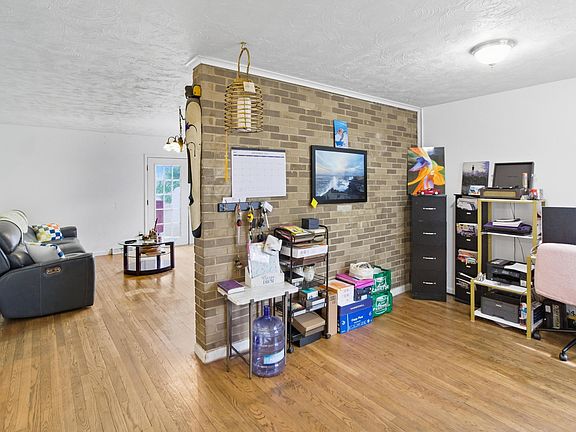 Private fully fenced lotDetached one-car garageCovered porchOpen kitchenUpdated master suiteGleaming hardwood floorsHardy brick fireplace