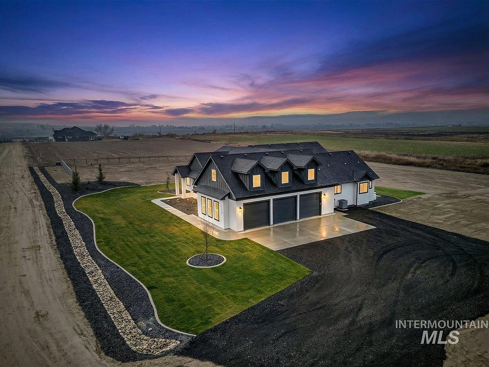 Discover luxury country living at its finest in this exceptional new construction home offering 3,840 sq ft of modern elegance on 2.09 private acres in Parma, Idaho. With 4 spacious bdrms, 3.5 bth & a highly versatile upstairs bonus room that doubles beautifully as a 5th bdrm, this home delivers unmatched flexibility. Breathtaking vaulted ceiling & an impressive floor-to-ceiling picture window create a stunning statement in the main living space & primary bedroom, flooding the home w/natural light & showcasing panoramic views. The heart of the home is the chef’s kitchen, featuring SS appliances, a versatile double oven, beautiful quartz countertops & a walk-in pantry. Enjoy exceptional outdoor living on the expansive 1,000 sq ft covered patio, complete w/soaring 30-foot ceilings-the perfect backdrop for entertaining, unwinding & taking in the dramatic mountain sunsets. Oversized 3-car garage, RV parking & generous acreage ideal for horses, a future shop, recreational toys, or even the addition of an ADU-providing limitless options for multi-generational living. Fully fenced & landscaped. Located close to the Snake River, you’ll enjoy quick access to fishing, boating & endless outdoor recreation right at your fingertips. With no back neighbors, unobstructed views & less than an hour to Boise, this home delivers the ultimate blend of serenity, space & upscale modern living.