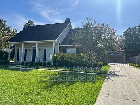 Experience the best of Denham Springs living in this charming 3-bedroom, 2-bathroom Acadian-style home located in the prestigious, well-maintained Carter Hills subdivision. With its prime location near the I-12 Juban Exit, properties here are always in high demand. This thoughtfully laid-out home is a dream, featuring durable wood laminate and tile flooring throughout no carpet! The inviting open kitchen showcases freshly painted cabinets, granite counters, and modern stainless steel appliances. Retreat to the spacious master bedroom and bath. Throughout the home, you'll appreciate elegant details like recessed cathedral ceilings and crown molding. The expansive backyard offers ample space for gatherings, complemented by two convenient covered carports. Act fast homes in Carter Hills don't last! Contact us for a showing. Schedule a viewing! $350 Non-Refundable Pet Deposit (UNDER 40lbs) Property viewing is mandatory before applying. Application requirements: Credit score: 550+ Rental history verification Background check Income 3x rent All adults must apply Amenities: washer/dryer connections, fireplace, fenced, carport, covered patio