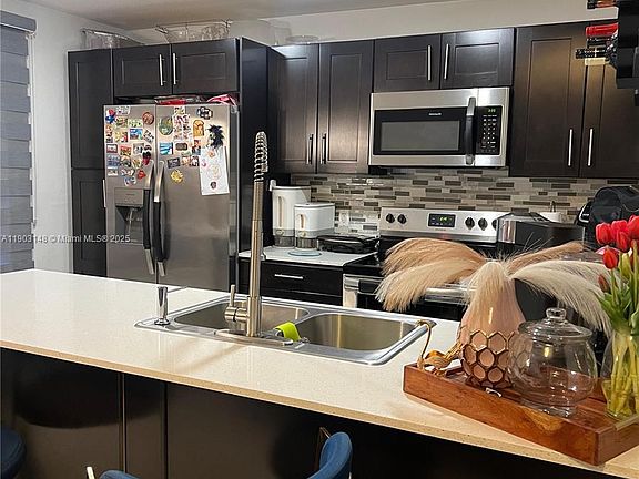 Modern townhouse featuring impact windows, located in front of the community garden. This beautiful property offers 4 bedrooms and 3.5 bathrooms with a mix of laminate and ceramic flooring. One bedroom is conveniently located on the first floor with a full bathroom, ideal for guests or family members. Enjoy a spacious terrace perfect for gatherings and relaxation. The home is built with solid concrete construction, ensuring durability and low insurance costs. Flood insurance is not required. Its prime location near the Turnpike and US-1 provides excellent accessibility and convenience for everyday living.