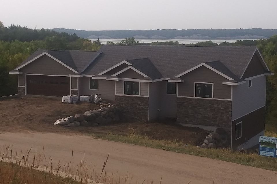 A beautiful NEW lake view home on a wooded 1.67-acre lot features the best of all worlds PLUS, upper and lower double stall attached garages.