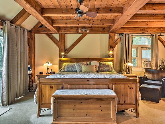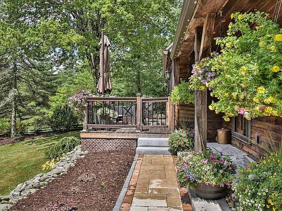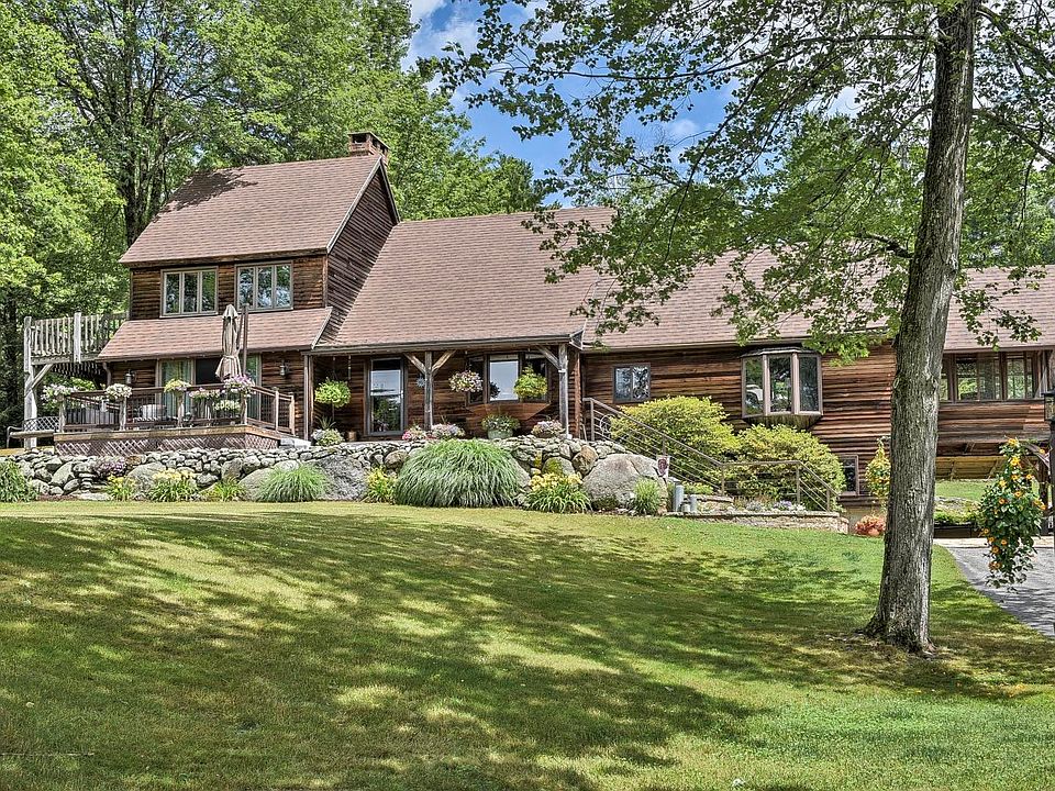 VIEWS!! Just across the border this stunning Post & Beam home has it all with an easy commute to Mass. VT or Keene. As you pull into the property it welcomes you with well-lit custom retaining walls, expansive perennial gardens, two-car garage, and barn on just under 2 acres. Enjoy life outdoors under the covered pergola, relax in the hot tub, or invite friends to visit with their RV, just hook up and enjoy. On the first floor you’ll find soaring ceilings and incredible Southern views of the mountains. An updated generous sized kitchen featuring light cabinetry, Moroccan inspired cement tile backsplash, and quartz countertops. Just steps from the kitchen you’ll find the sunken living rm that leads you to the quaint sun porch or through the sliders to the back deck. The Primary bedroom is conveniently located on the first flr with a wood fireplace, sliding doors onto your private deck, and expansive 12X12 walk-in closet with built-ins. Just steps away there is a luxurious bathroom with large walk-in tiled shower, heated flrs, & beautiful double-vanity topped with marble. The finished walk-out lower level offers a large exercise area, laundry rm, and extensive storage. The lower level serves as an addt'l lvng space, in-law apt or Airbnb. There is a separate kitchen with beautiful finishes, SS appliances, and quartz counter-tops, living/dining area, generous 3rd bedroom & 3/4 bath.