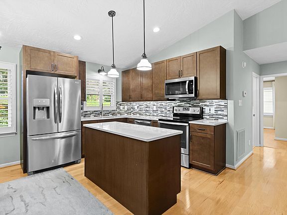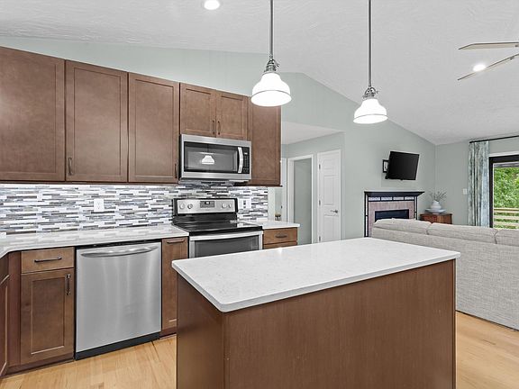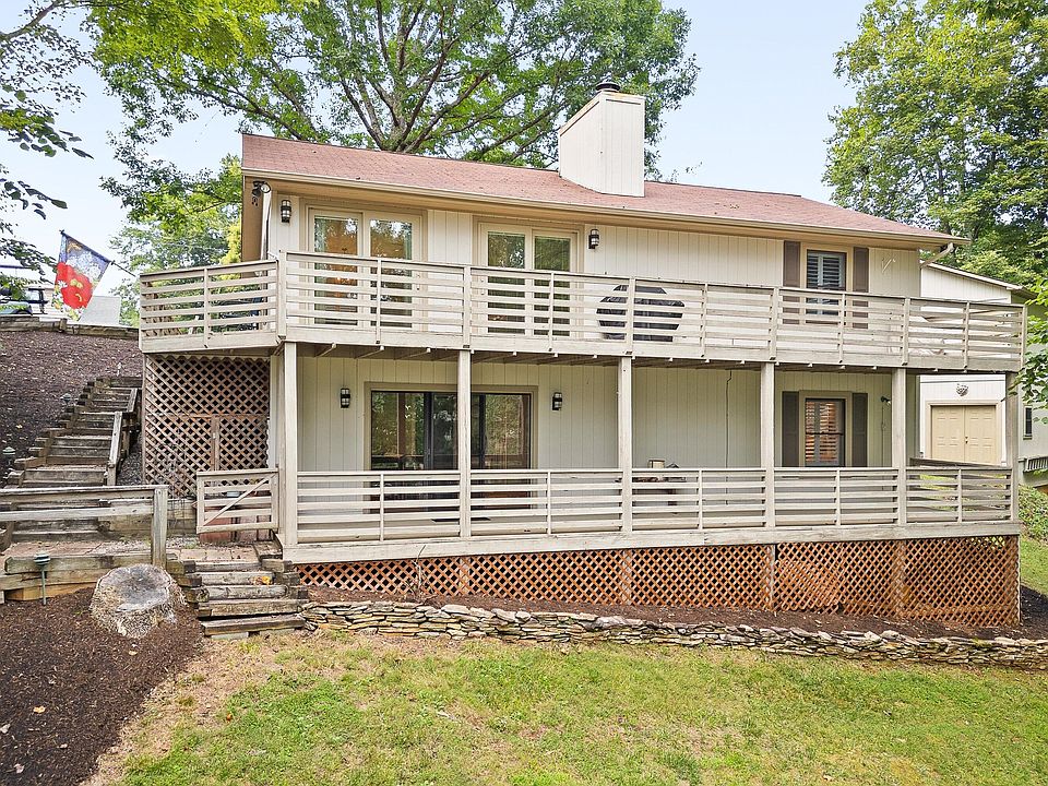Just the right size house on Smith Mountain Lake. If one floor living is what you need, the entry level has an open floor plan with vaulted ceiling, spacious modern kitchen and dining area plus two bedrooms with new vinyl plank (use one for an office or craft room) a smartly updated full bath and a laundry closet with full size appliances. Lower level offers a family room, huge laundry and storage room, two bedrooms and an updated full bath. Interior has been painted, can lights with dimmers added throughout. Enjoy the lake and quiet location from the upper or lower decks that span the house. The detached two car garage has a lower level for workshop or storage. Double slip dock on a quiet deep cove minutes from Magnum Point Marina for year round dining, or gassing your watercraft.