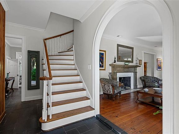 Welcome to this stunning 1½-story French Provincial home nestled in the heart of the desirable Spring Hill neighborhood. With 3,917 sq. ft. of thoughtfully designed living space, this residence blends timeless architectural elegance with modern comfort and convenience. An inviting covered front porch with arched windows and a double-door slate-floored foyer set the tone for the sophistication within. The main level offers 10-foot ceilings, a gracious living and dining room with French doors opening to a spacious brick patio, perfect for entertaining or relaxing outdoors. The primary suite is located on the main floor, featuring a walk-in closet and a spa-inspired ensuite bath with double vanity, soaking tub, and oversized shower. A nearby study or fifth bedroom also includes its own ensuite bath, ideal for guests or a home office. The kitchen showcases Alabama marble countertops, newer energy-efficient appliances, ample cabinetry, a breakfast bar, and a bright breakfast area. A separate laundry room offers additional cabinetry and storage. The expansive family room is the heart of the home, complete with a fireplace, wet bar, and a wall of windows overlooking the lush, fenced backyard, garden, and pergola-covered outdoor area. Upstairs, you will find three spacious bedrooms, a bonus room, a hall bath, and generous walk-in attic storage. Each upstairs bedroom enjoys views of the backyard and access to an exterior spiral staircase leading down to the patio. Additional highlights include a detached double garage with large workshop area, irrigation system, whole-house generator, and magnificent live oak trees framing the property. Combining classic French design with modern updates and outdoor beauty, this property offers a rare opportunity to own one of Spring Hill's most graceful residences. Year built is unknown.