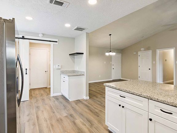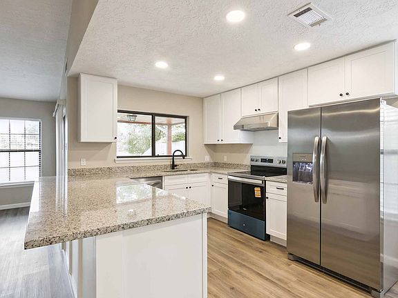 This is a lovely 3 bedroom, 2 bath home in the much sought-after Friendswood ISD (FISD). This home has been fully renovated with new flooring and paint throughout, all new appliances, new light fixtures and ceiling fans, brand-new master bathroom shower, and fenced backyard. The kitchen-breakfast combo is open to the living room with an awesome long bar with seating, making this space perfect for entertaining. The kitchen has lots of counter space and storage along with a coffee bar area. The backyard is fully fenced with no back neighbors. This home is also within walking or biking distance to Windsong Elementary School. Rent includes lawn care! Schedule your showing today!